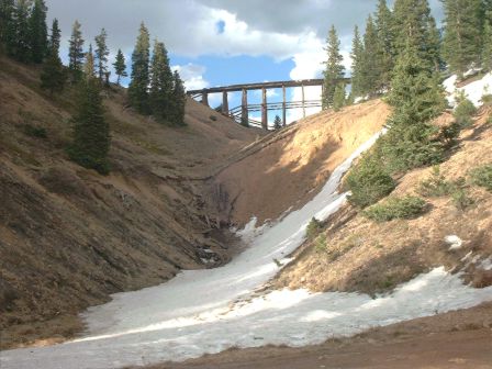 The train disappeared into the tunnel in a cloud of smoke and we walk back to the parking area. A bit earlier we had been joined by the lady hiker from Aurora that we met up on the Moffat Road. She had parked way below Arrow and walked thru the snowdrifts on foot to reach Corona Pass.